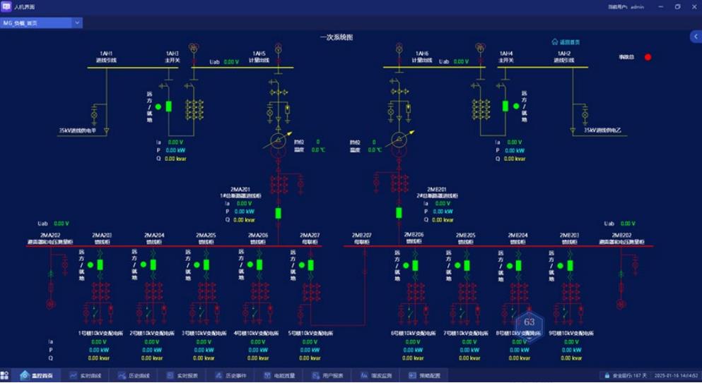 對一次系統(tǒng)圖重要節(jié)點進行數(shù)據(jù)采集并直觀展示,實現(xiàn) 微電網(wǎng)無人值守,真正實現(xiàn)數(shù)字化、智能化、便捷化管 理,對重要負荷與設備進行不間斷監(jiān)控。